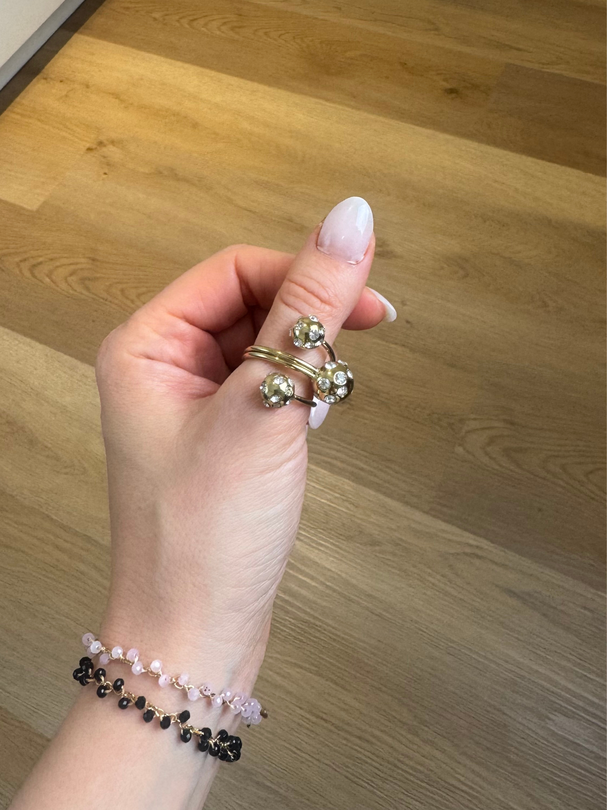 Anel Bolas com zircónias