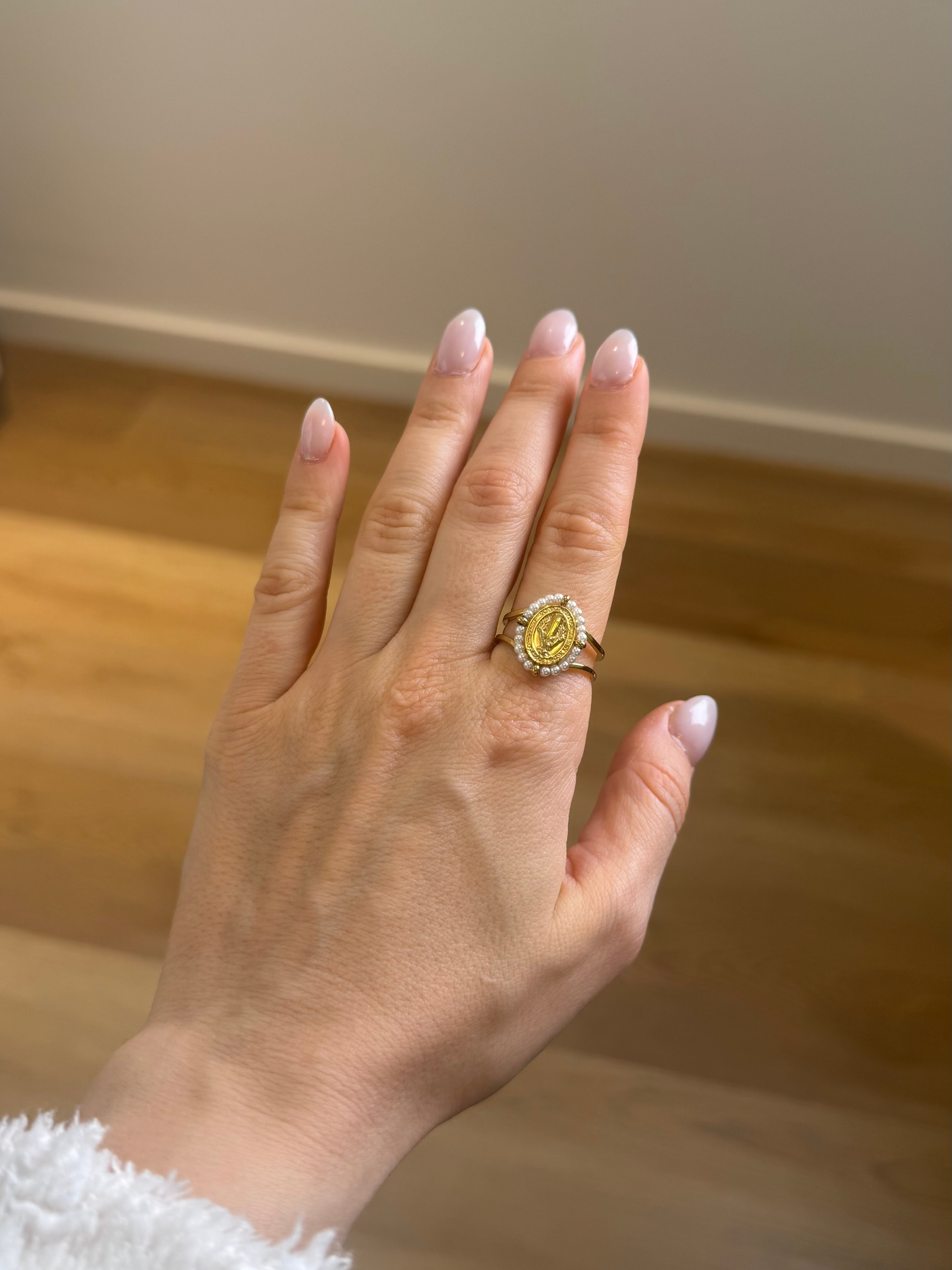 Anel Santo Missangas brancas ajustável